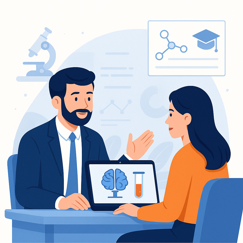 Ilmiy g‘oya tanlashdan boshlab, metodologiya, tahlil va natijalarni taqdim etishgacha bo‘lgan bosqichlarda sizga malakali yo‘l-yo‘riq beramiz.